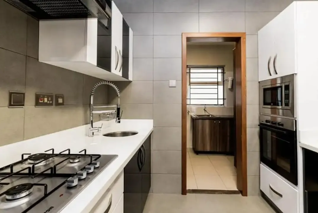 Lovely luxury apartments carefully designed and planned with client's comfort in mind. Fully equipped kitchen including microwave, oven, extractor hood, kitchen hob, fridge, and water purifier for clean drinking water.