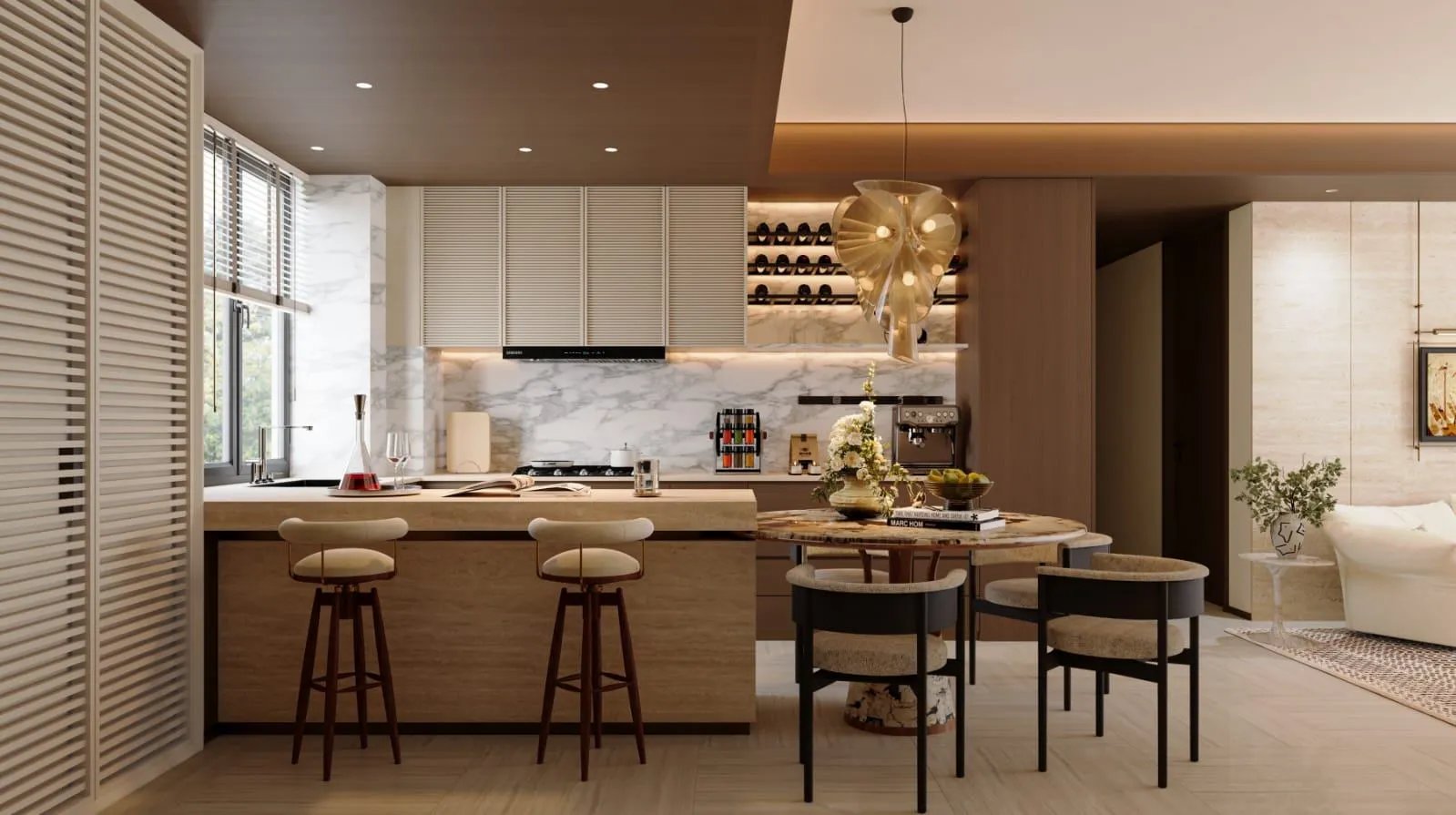 Large windows for natural lighting and scenic views