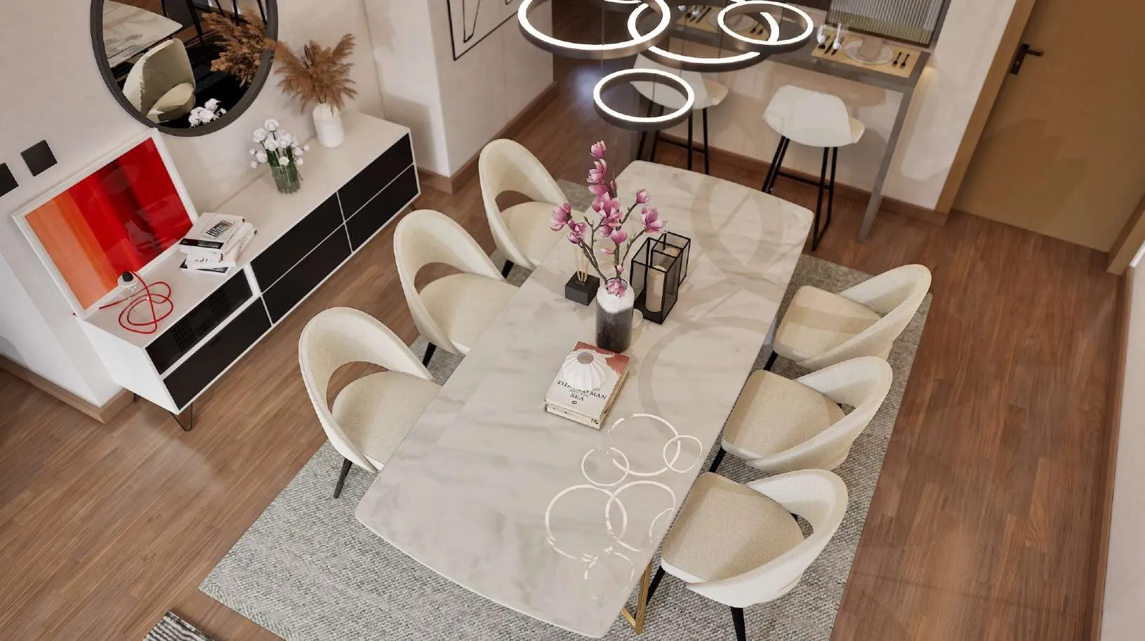 Spacious living and dining area
